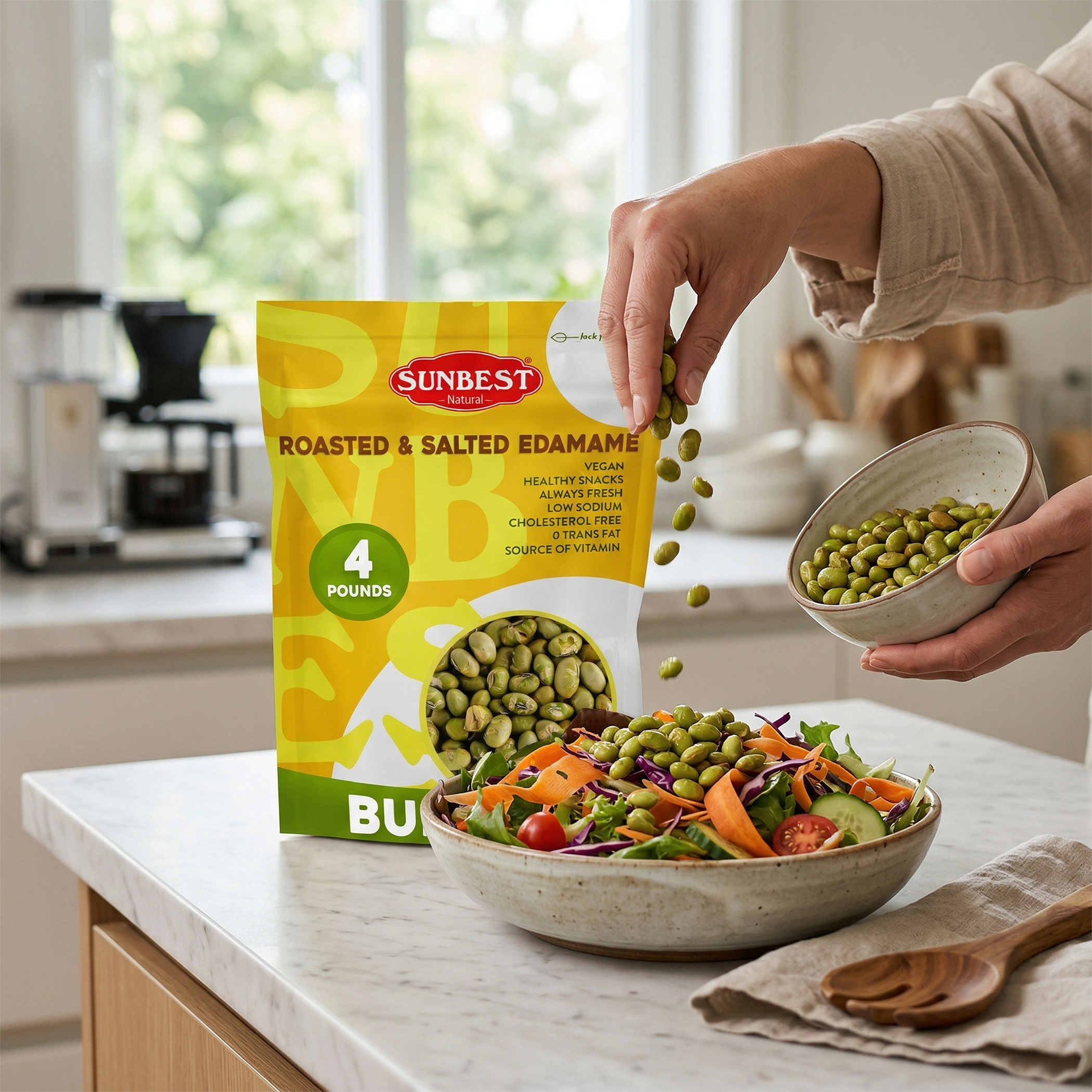 Sunbest Natural Dry Roasted Edamame (Roasted & Lightly Salted Green Soybeans) are a crunchy, satisfying, and nutritious snack that is packed with plant-based protein, fiber, and essential nutrients. Lightly roasted and salted to perfection, these edamame are the perfect balance of flavor and health benefits.